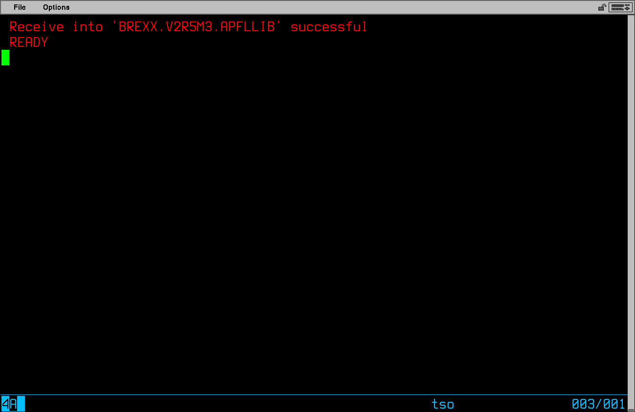 //RECEIVE JOB (1),'UNPACK XMIT',CLASS=A,MSGCLASS=X //RECV01 EXEC RECV370 //XMITIN DD DSN=JAY01.UPLOAD.XMIT,DISP=SHR //XMITOUT DD DSN=JAY01.XEPHON.PDS,DISP=(NEW,CATLG,DELETE), // UNIT=SYSDA,SPACE=(TRK,(60,15,10)),VOL=SER=PUB000 //