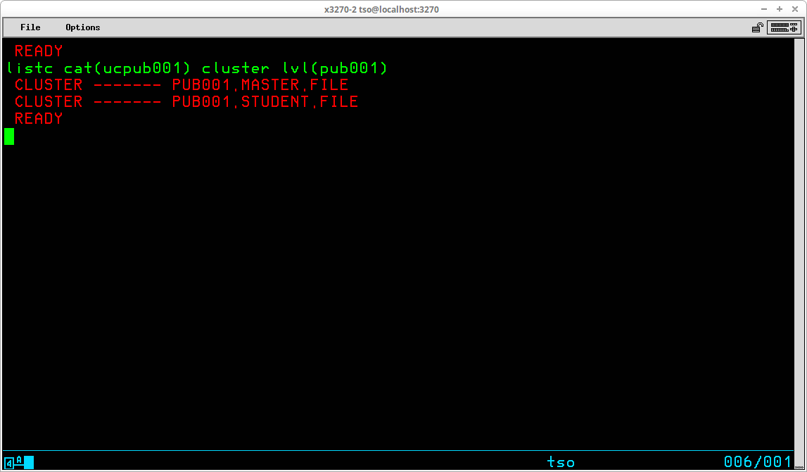 My goal in writing this tutorial is to provide at least the minimum instruction required to begin using TSO to perform the tasks shown above. As I wrote this tutorial I drew upon my own work experience using TSO for a number of years in development environments. The basic outline for what I decided to include was constrained by an an OS/VS2 TSO Command Language Reference Summary (IBM publication number GX28-0647-3) from my library. All material presented in this tutorial has been verified under MVS 3.8j running under Hercules (version 3.13). The 3270 terminal emulator I use on my Linux machine is X3270. When this page was first written, I was using Tom Brennan's Vista (version 1.24) on a Windows machine and I highly recommend Vista if you are a Windows user. As I refresh this material (June 2020) the screen captures are done with X3270. The case of commands and operands typed during a TSO session is generally irrelevant; however in this document I have capitalized commands and operands, or portions thereof, when command syntax is being given to connote the required (or minimal) syntax required for recognition by TSO. The order in which I have chosen to present TSO commands in this tutorial is that which seems most logical to me and is what I would deem useful if I were using TSO for the first time. There is an Index at the bottom of this page which contains links by which a number of topics may be rapidly accessed.